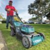 Makita is expanding the line of cordless outdoor power equipment to include the 36V (18V X2) LXT® Brushless 21” Self-Propelled Commercial Lawn Mower (XML08Z). With zero emissions, lower noise and reduced maintenance, the 36V (18V X2) LXT® Self-Propelled Commercial Lawn Mower is a welcome solution for efficient grass cutting. It’s powered by two 18V LXT Batteries, but holds four batteries for twice the run time. There is no need to leave the 18V battery platform. The Makita-built motor delivers up to 2,800 RPM. The Quiet Mode setting reduces noise by providing constant speed control at 2,300 RPM. The mower offers ease-of-use features including quick height adjustments, mulching capability, and a commercial-grade steel deck. It features a 3-in-1 design for mulching, bagging, or side discharge. The lawn mower features Makita® Extreme Protection Technology (XPT™). XPT™ is a protective seal inside the tool and is engineered for improved operation in harsh conditions by channeling water and dust from key internal components.It’s part of Makita’s expanding 18V LXT System, the world’s largest cordless tool system powered by 18V lithium-ion slide-style batteries. Makita 18V LXT Lithium-Ion Batteries have the fastest charge times in their categories, so they spend more time working and less time sitting on the charger. For improved tool performance and extended battery life, Makita created Star Protection Computer Controls™. Star Protection is communication technology that allows the Star Protection-equipped tool and battery to exchange data in real time and monitor conditions during use to protect against overloading, over-discharging and overheating. For increased versatility, the tool can also be powered by Makita 18V LXT Lithium-Ion Batteries with the star symbol on the battery indicating Star Protection inside.