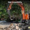 - Wide Applications:Â This root planer is essential for enhancing your mini excavator’s efficiency and performance. It’s ideal for excavating trees and root planning on loose and hard soil layers, permafrost layers, soft rocks, and more