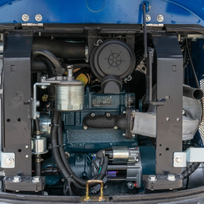 Engine: Kubota D722, 3-cylinder, water-cooled diesel engine delivering 16.4 HP at 3,600 RPM